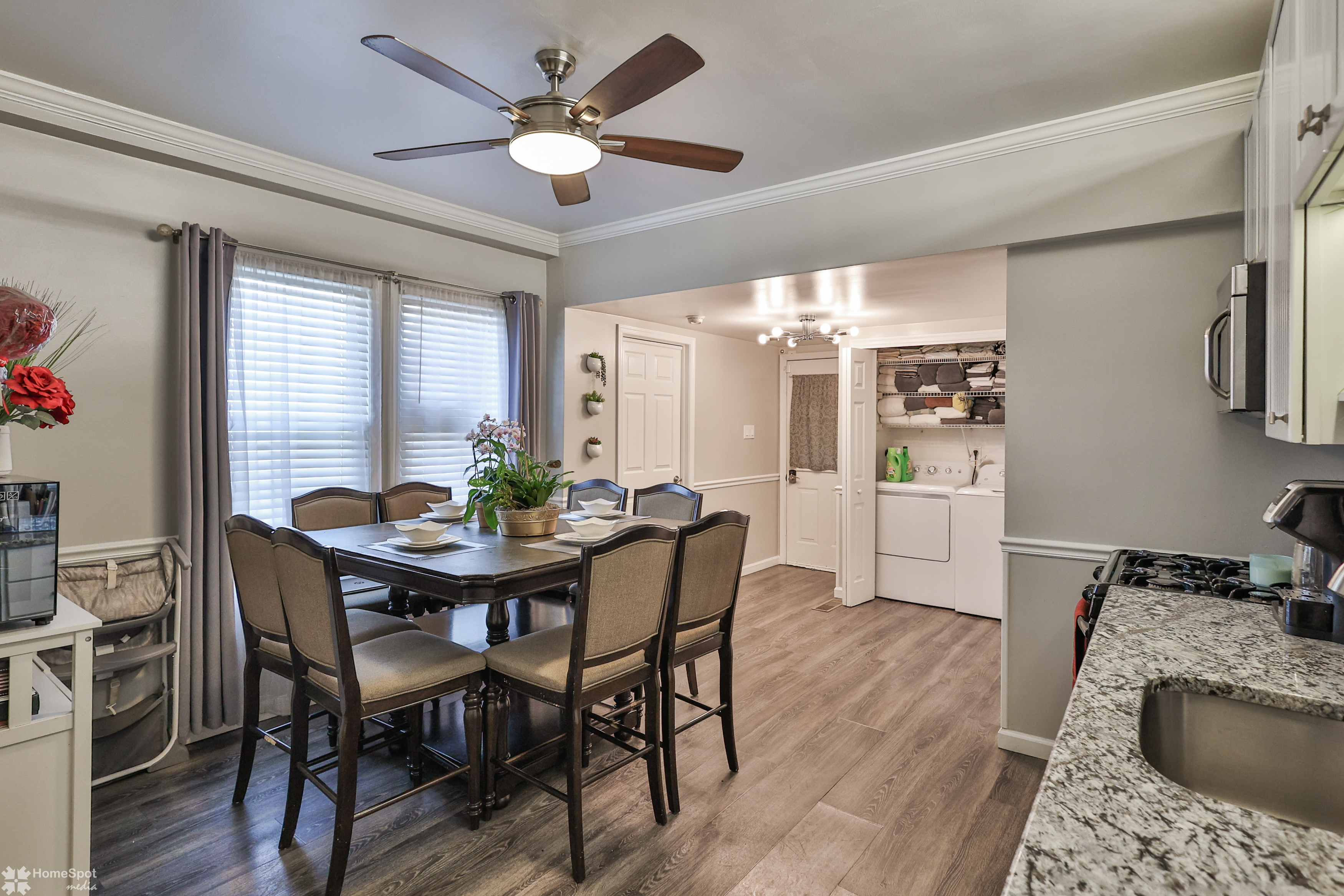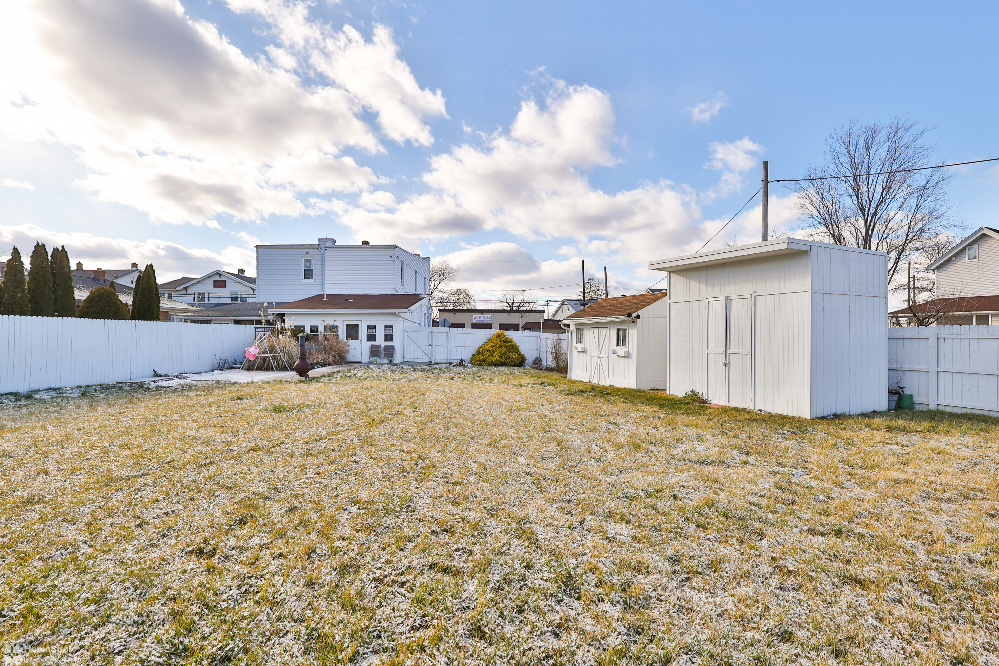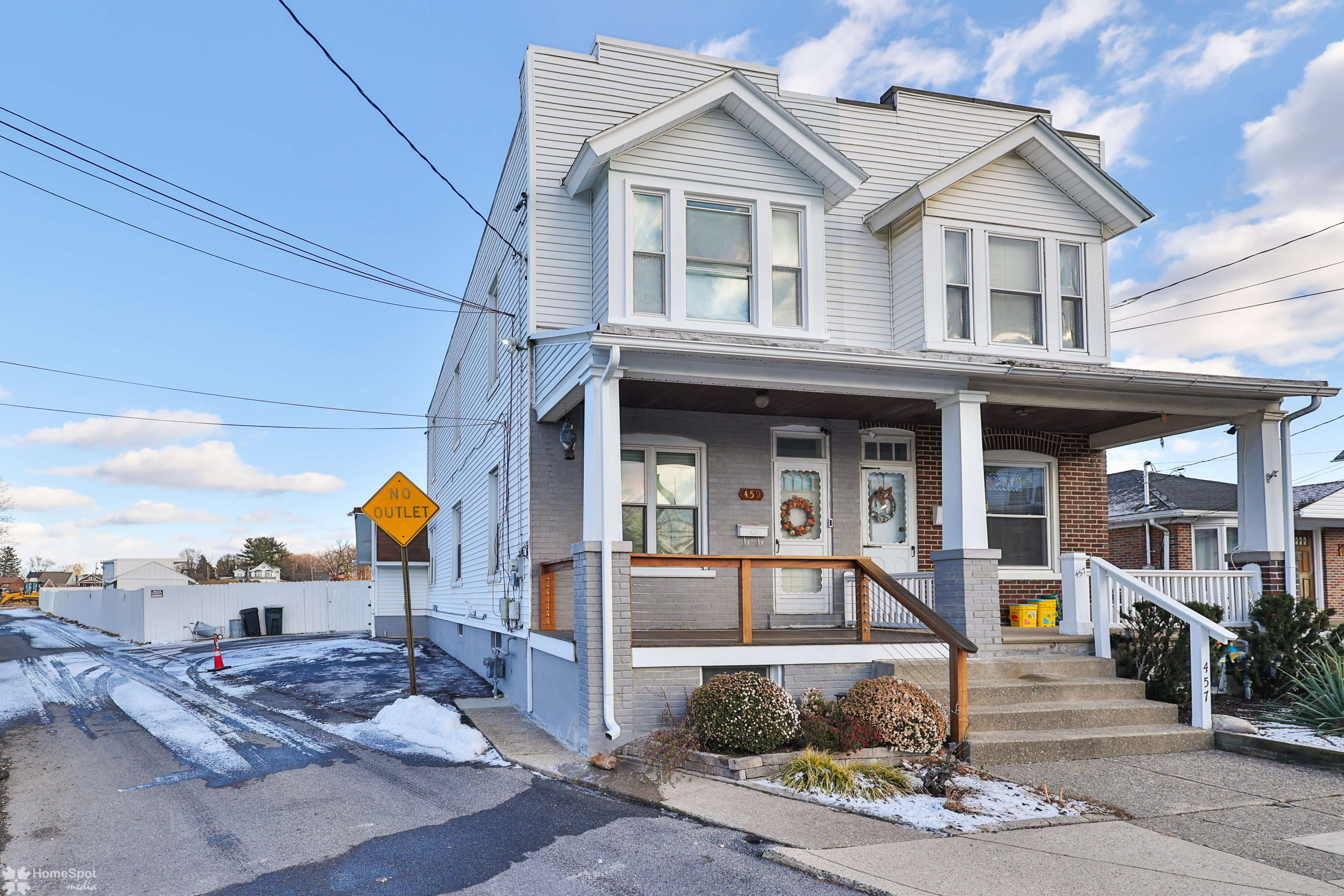 Rare find! Immaculate twin home with an exceptionally large, fenced in yard! Cozy front porch with composite decking and stainless wire railing welcomes you home! Inside the large family room boasts LVP flooring, grey color tones and high ceilings! Open concept modern eat in kitchen! Modern white cabinetry, granite counters and stainless steel appliances! Walk in pantry and first floor half bath! Convenient main floor laundry! Rear enclosed porch leads you to the private fenced in yard and off-street parking for two cars! Master bedroom is located on the second floor and offers ample closet space! Two more additional bedrooms boast neutral color tones and plenty of storage! Updated full hall bath with tile shower and vanity! Partially finished basement with laundry area and storage space! Gas heat and cooking! Move right in and enjoy your new home!