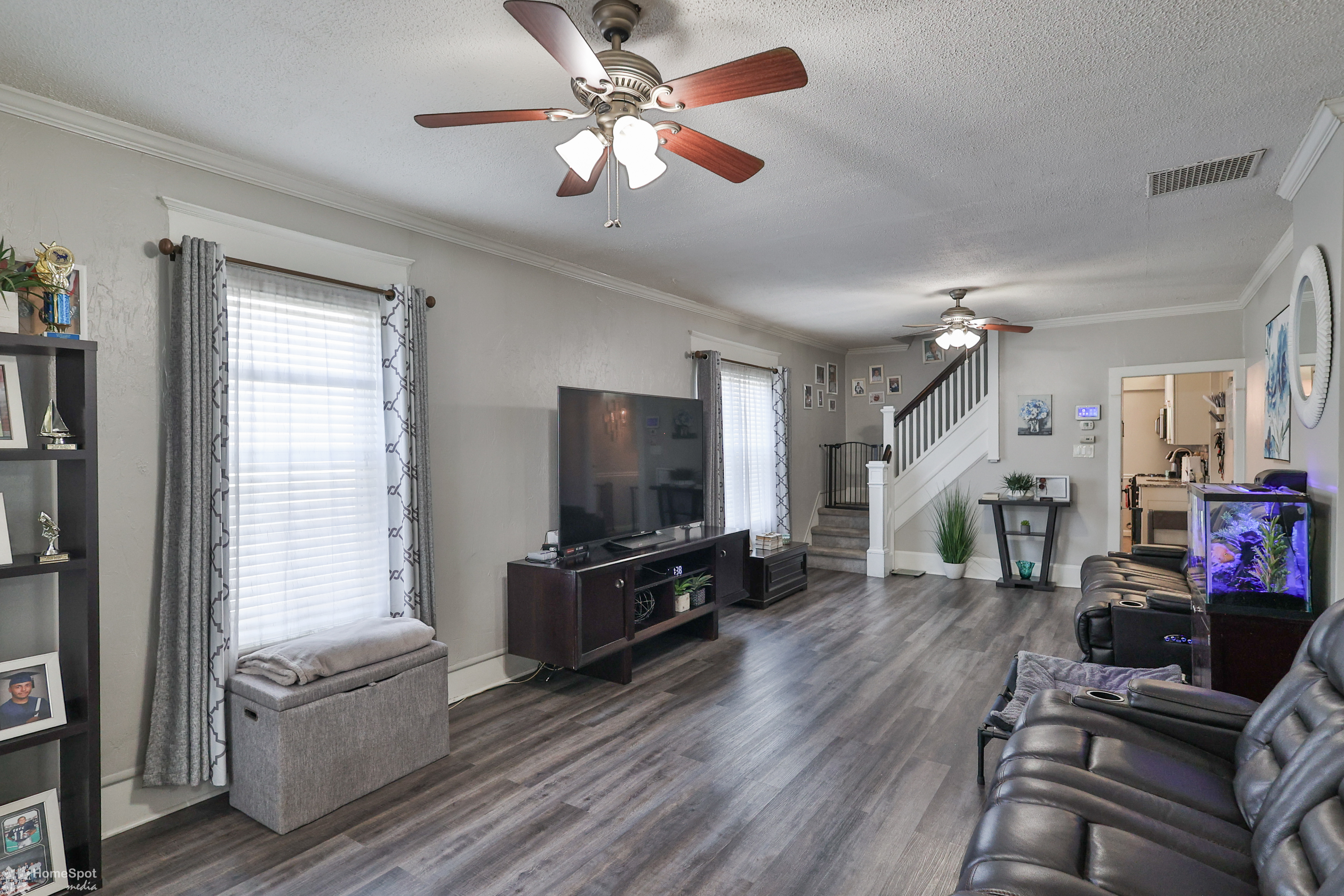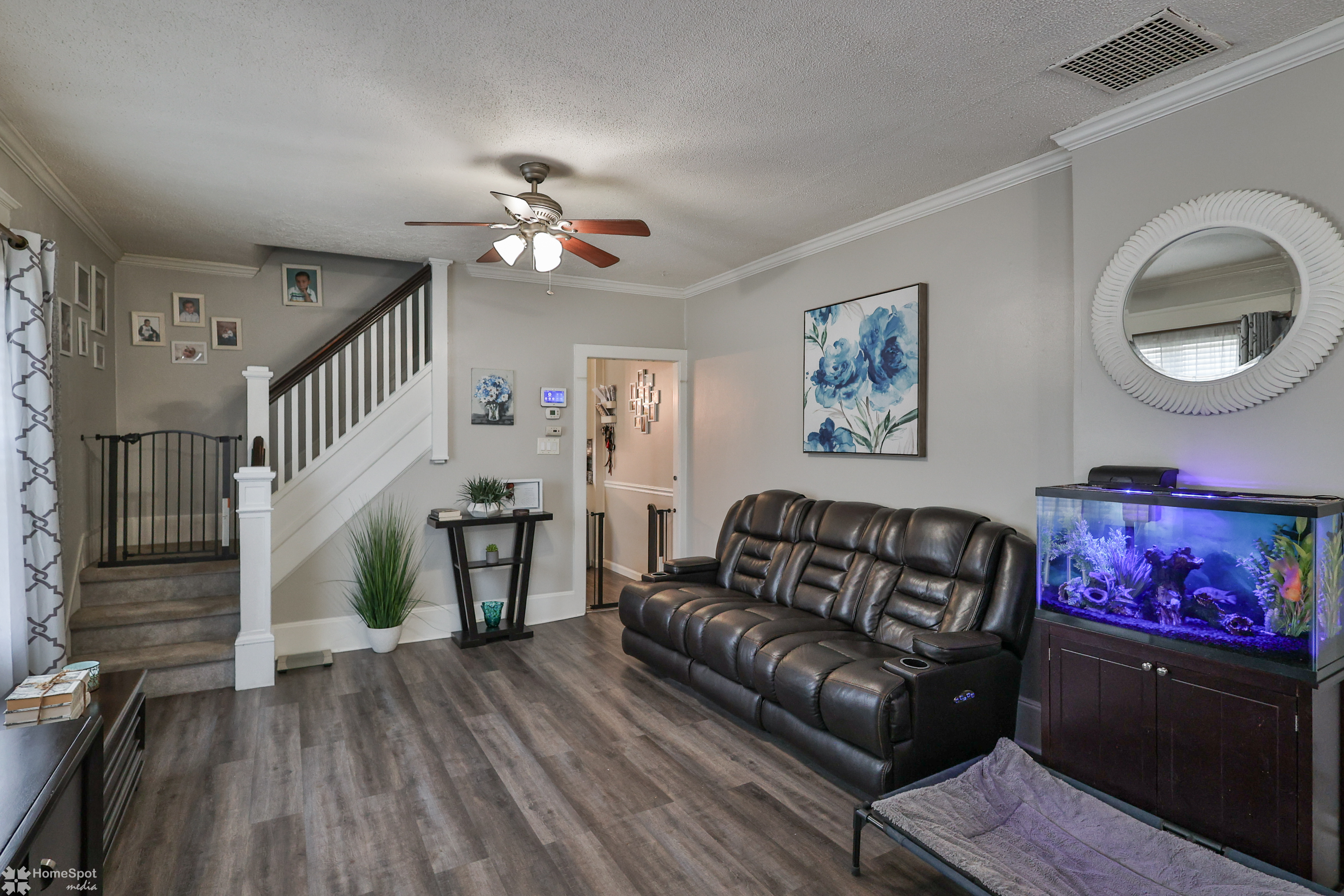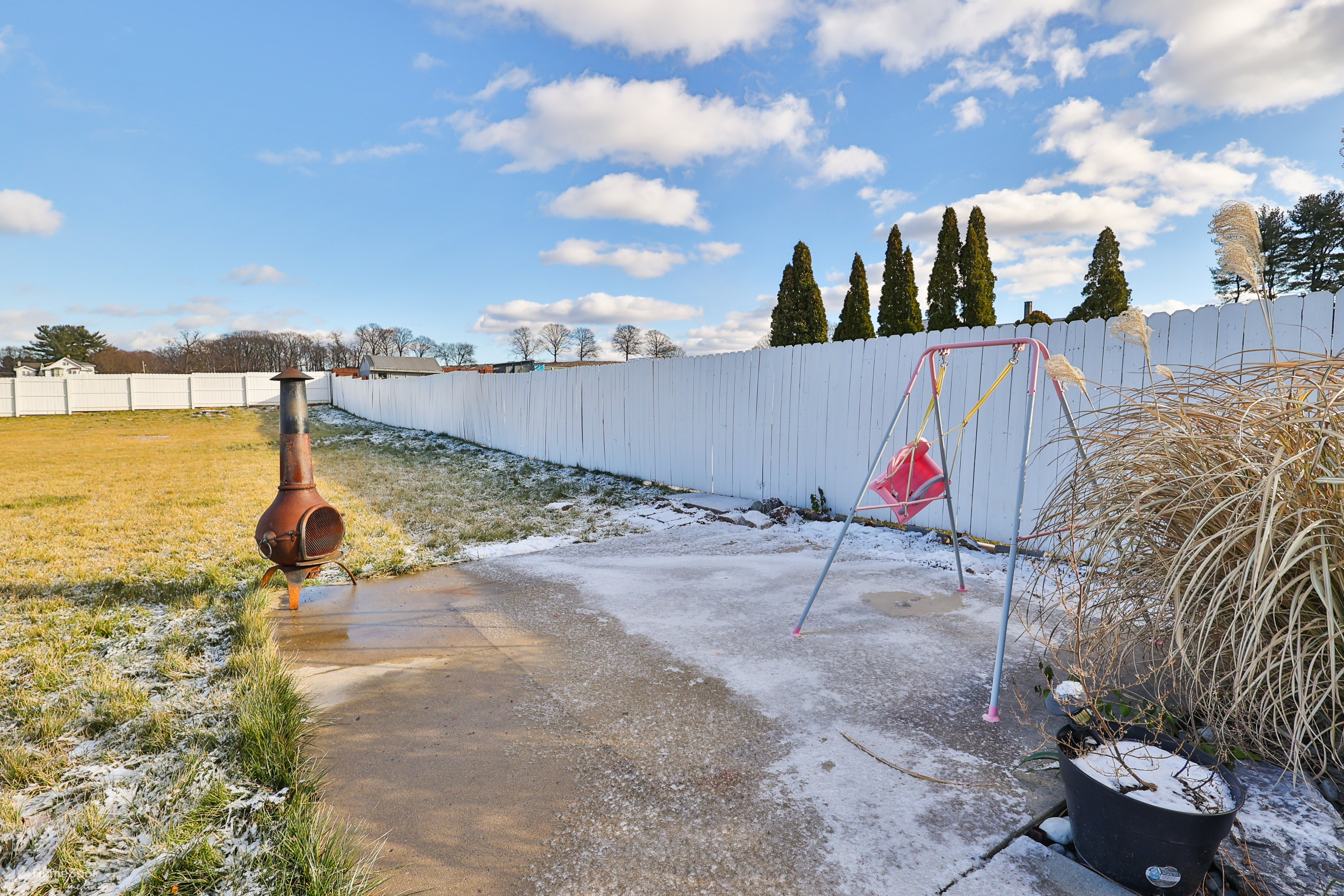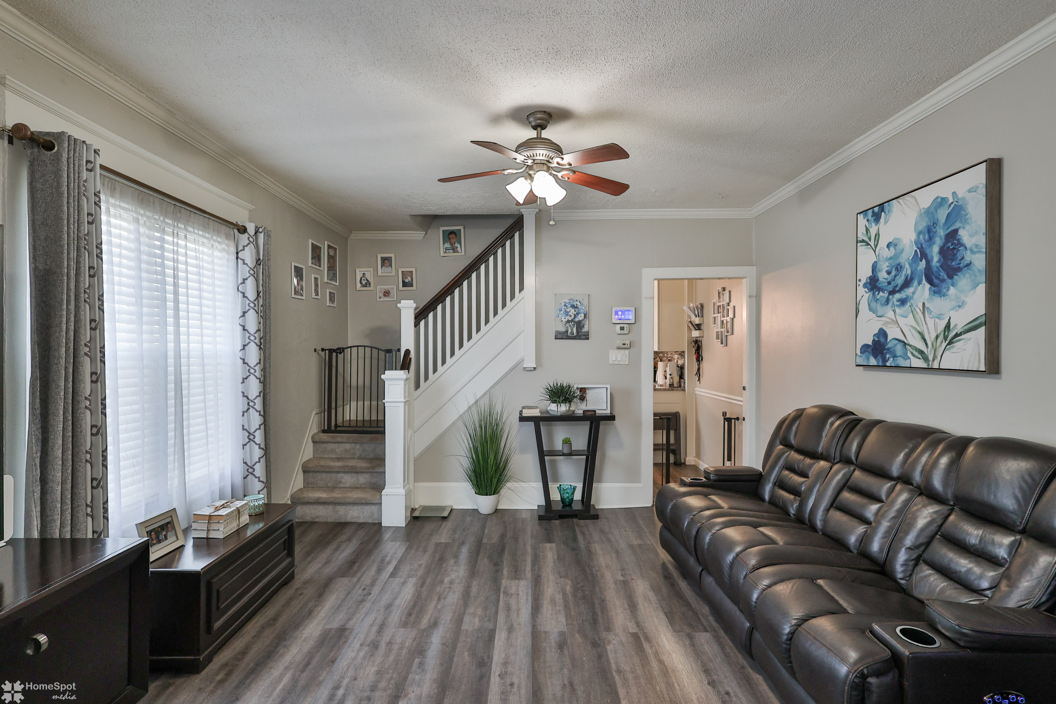 Rare find! Immaculate twin home with an exceptionally large, fenced in yard! Cozy front porch with composite decking and stainless wire railing welcomes you home! Inside the large family room boasts LVP flooring, grey color tones and high ceilings! Open concept modern eat in kitchen! Modern white cabinetry, granite counters and stainless steel appliances! Walk in pantry and first floor half bath! Convenient main floor laundry! Rear enclosed porch leads you to the private fenced in yard and off-street parking for two cars! Master bedroom is located on the second floor and offers ample closet space! Two more additional bedrooms boast neutral color tones and plenty of storage! Updated full hall bath with tile shower and vanity! Partially finished basement with laundry area and storage space! Gas heat and cooking! Move right in and enjoy your new home!